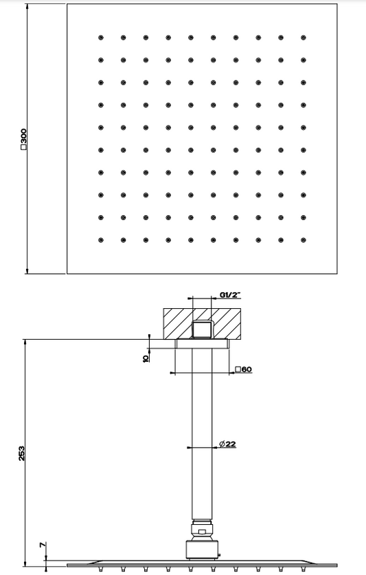 Gessi Emporio 47250 Soffione 30x30 Anticalcare con braccio Mirror Steel Shower