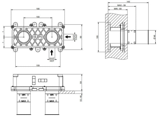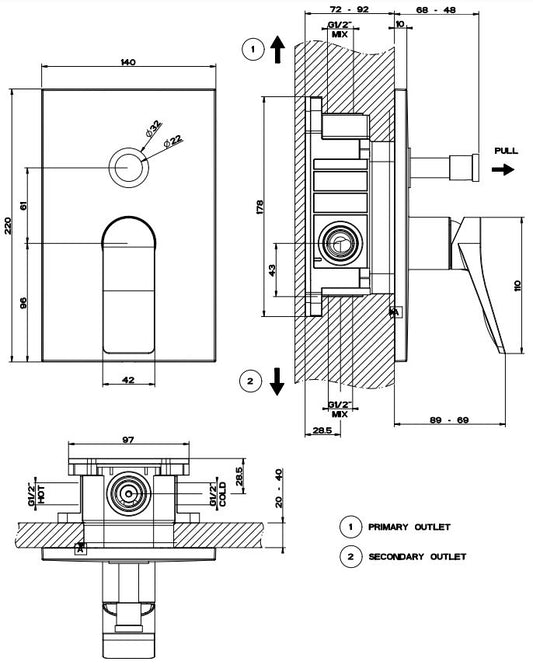 Miscelatore doccia 2 Vie Con Deviatore Automatico senza parte incasso Cromo Rilievo 59079 Gessi