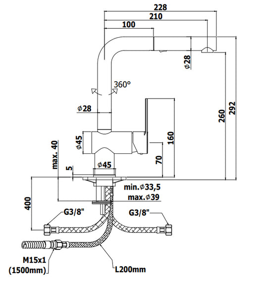 Miscelatore lavello doccetta 2 jet estraibile nero opaco Kitchen