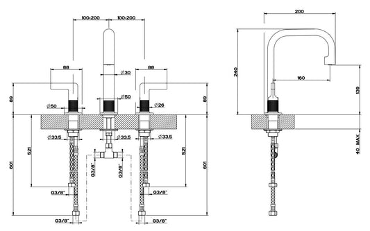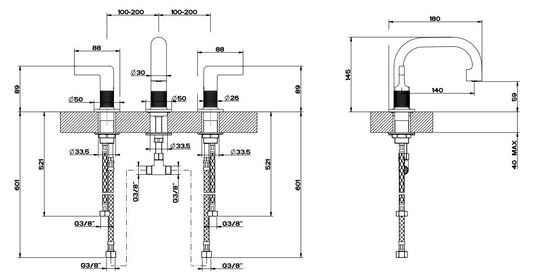 Gessi Inciso Gruppo Lavabo medio 3 Fori maniglie a leva con scarico Nero Xl 58013