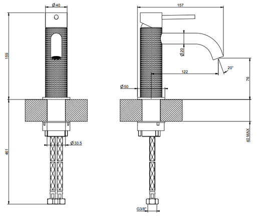 Gessi Intreccio Miscelatore lavabo senza scarico steel brushed 239