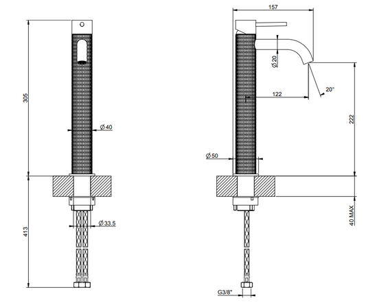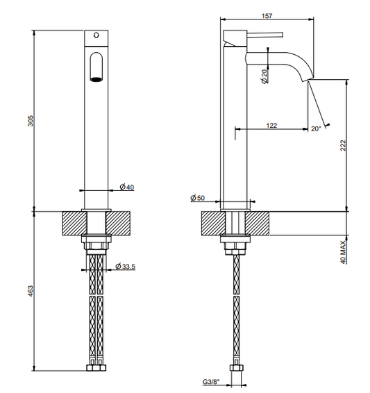 Gessi Rettangolo Miscelatore lavabo alto con scarico e flessibili cromo 11921