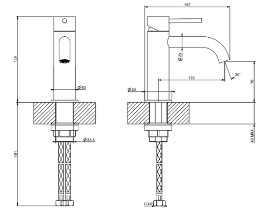 Gessi Goccia miscelatore lavabo bocca corta ad ombrello senza scarico cromo 33601