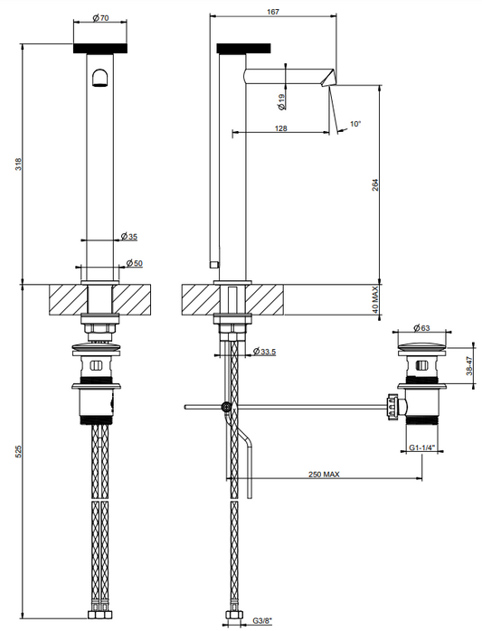 Miscelatore lavabo alto per ciotola senza scarico Steel brushed 239 Meccanica 54209 Gessi