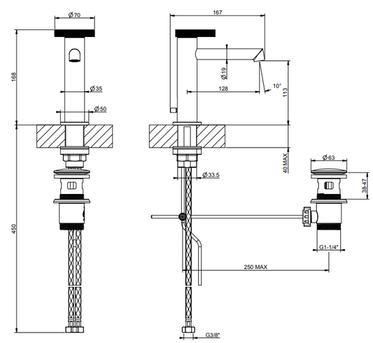 Gessi Gruppo lavabo 3 fori con scarico cromo rilievo 59011