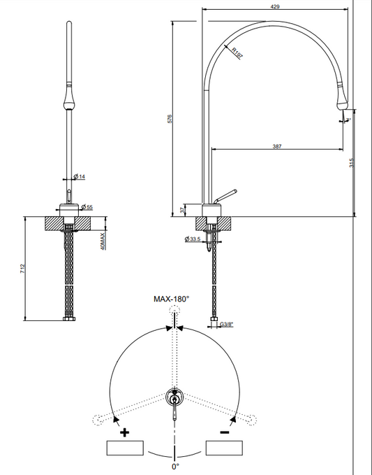 Gessi Inciso Gruppo lavabo 3 fori con bocca senza scarico matte black xl 58012