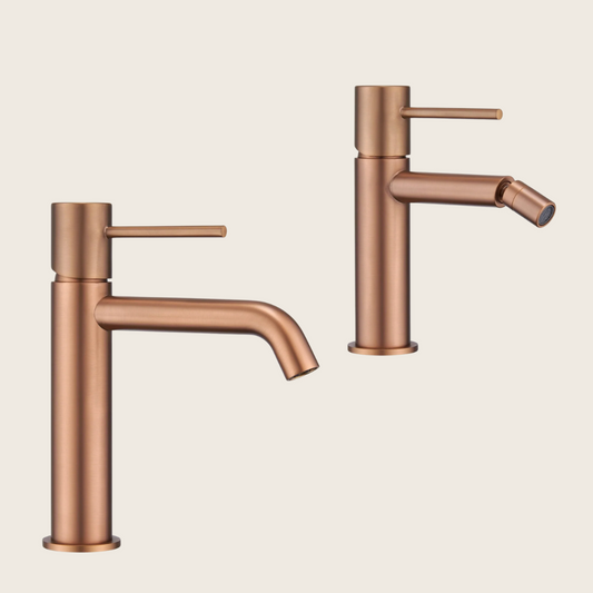 Coppia rubinetti lavabo e bidet senza scarico oro rosa spazzolato Melin