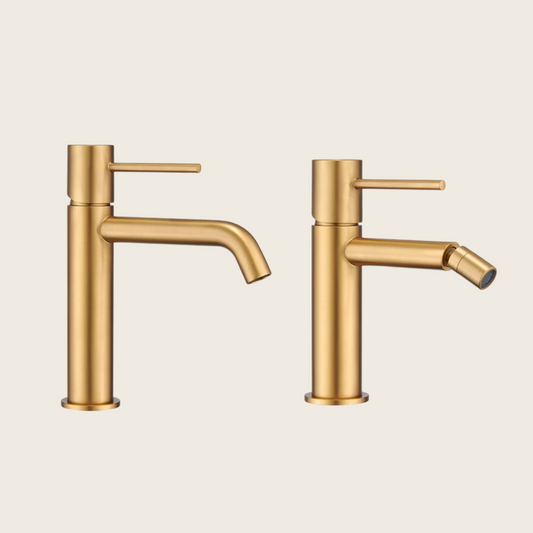 Coppia rubinetti lavabo e bidet senza scarico oro spazzolato Melin