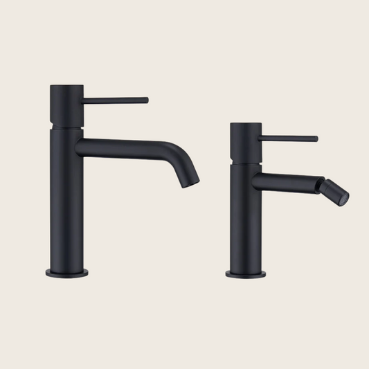 Coppia rubinetti lavabo e bidet senza scarico in ottone nero opaco Melin