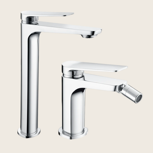 Coppia rubinetti lavabo alto e bidet in ottone cromo Hidden