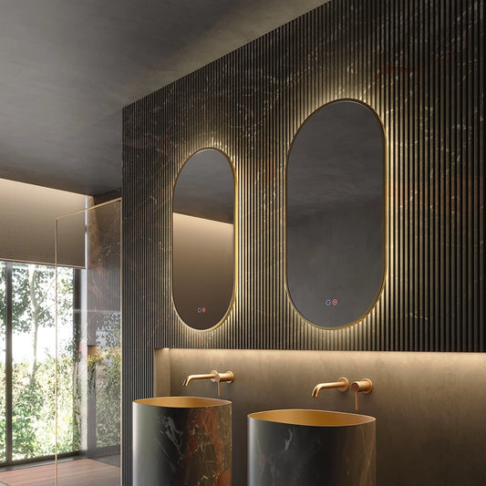 Specchio 90x50 retroilluminato 3 Led oro spazzolato Pisa
