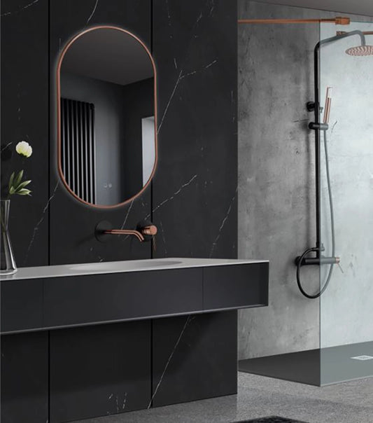 Specchio 90x50 retroilluminato 3 Led oro rosa spazzolato Pisa