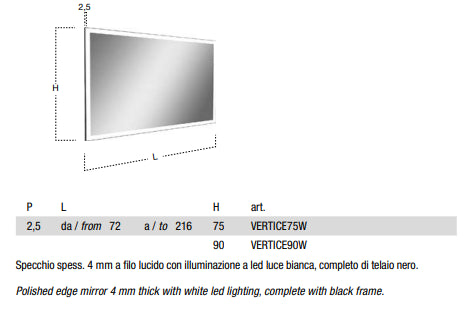 Antonio Lupi Vertice75w153 Specchio 75x153 Con Illumiazione Led Bianco