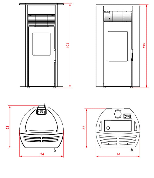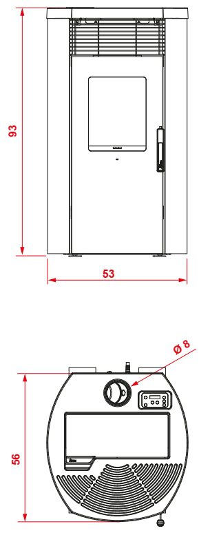 Royal Ilde Air 80 Stufa A Pellet Ad Aria 8kw In Acciaio Rosso