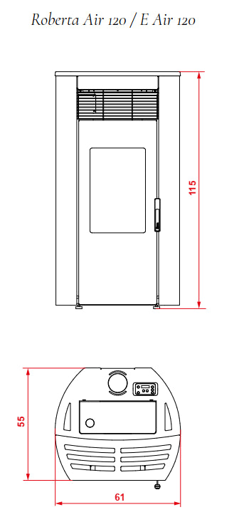 Royal rondine air 80 us stufa a pellet ad aria uscita fumi superiore 8kw rosso bordeaux