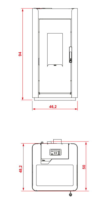 Royal Ilena E Air 60 Stufa A Pellet Ermetica Ad Aria Con Top In Ceramica 6,2 kw Rosso