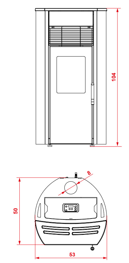 Royal Jada 8 Stufa A Pellet Ad Aria 8 Kw Serbatoio 19 Kg 45x59x102 Cm In Acciaio Rosso