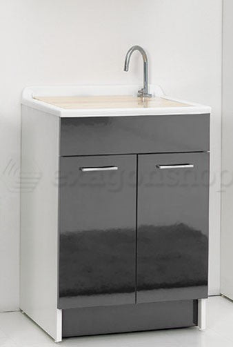 Mobile lavatoio 71x65 due ante vasca in metacrilato fondo in alluminio H 91 grigio spatolato grigio opaco
