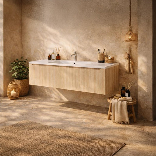 Mobile bagno 120x48 Merida cannettato quercia con lavabo a sinistra