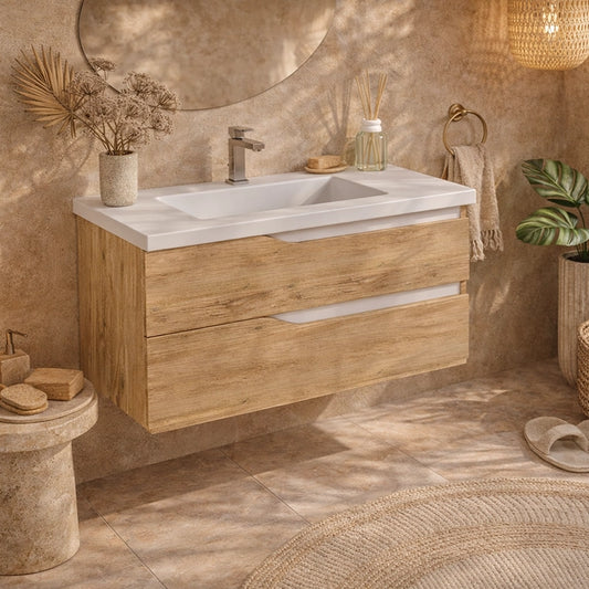 Mobile bagno rovere 100x45 Mango effetto legno con lavabo in ceramica
