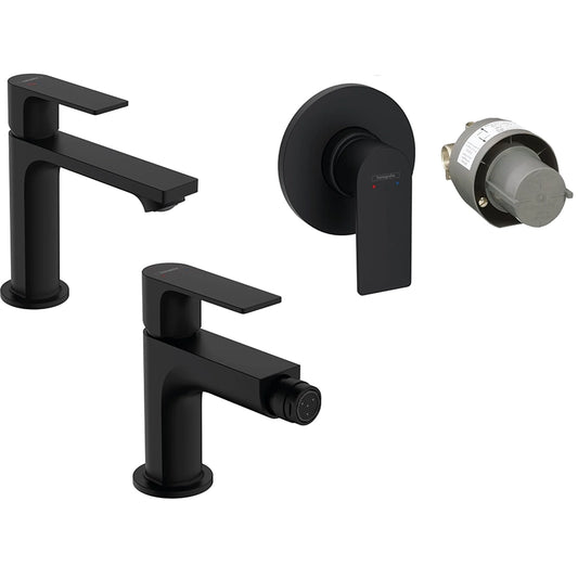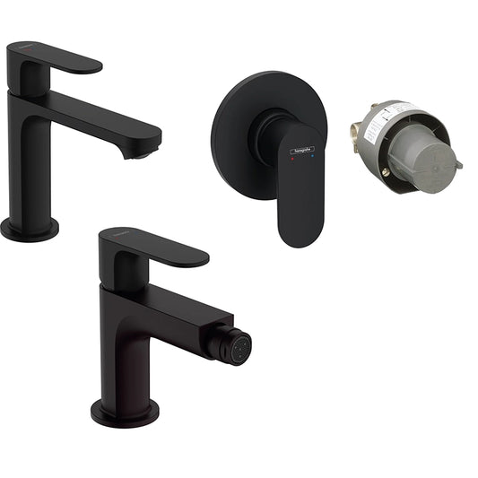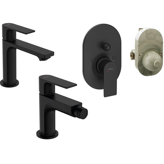 Hansgrohe Rebris E Set miscelatori lavabo coolstart bidet con scarico e doccia 1 via e parte incasso Nero Opaco