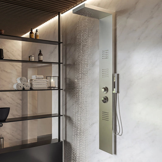 Pannello doccia idromassaggio termostatico effetto cascata in acciaio Quadro
