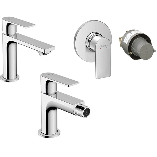 Hansgrohe Rebris E Set miscelatori lavabo e bidet con scarico e doccia 1 via con parte incasso cromo