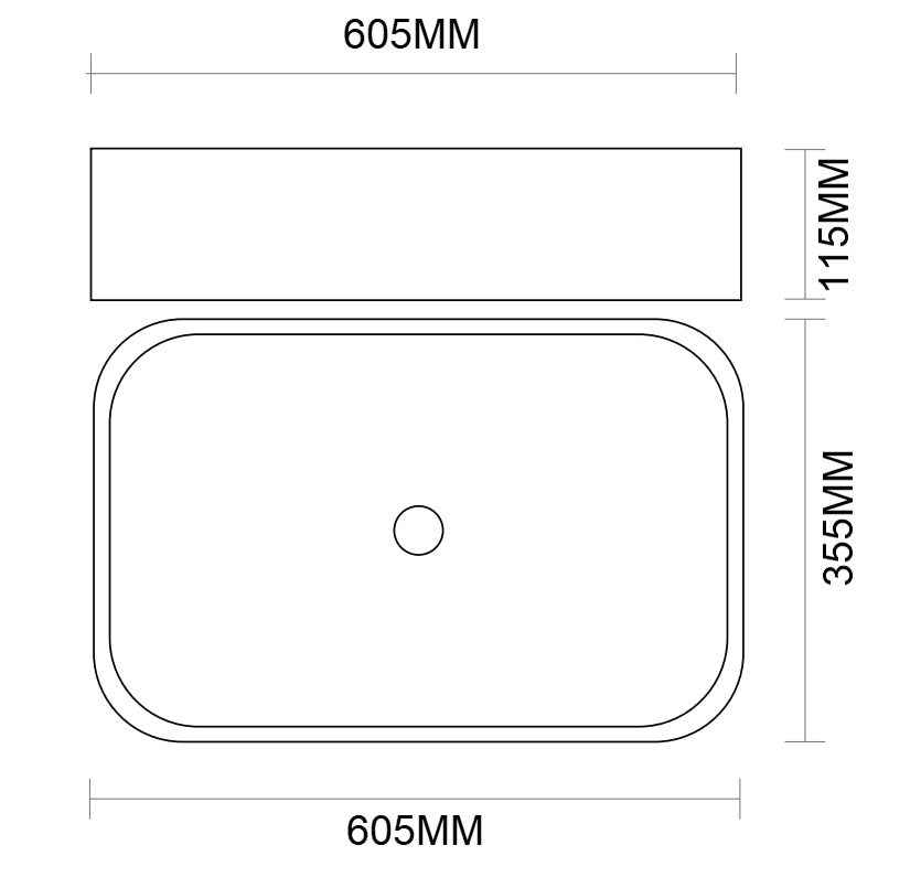 â Lavabo L. 60,5 X P. 35,5 X H. 11,5 cm