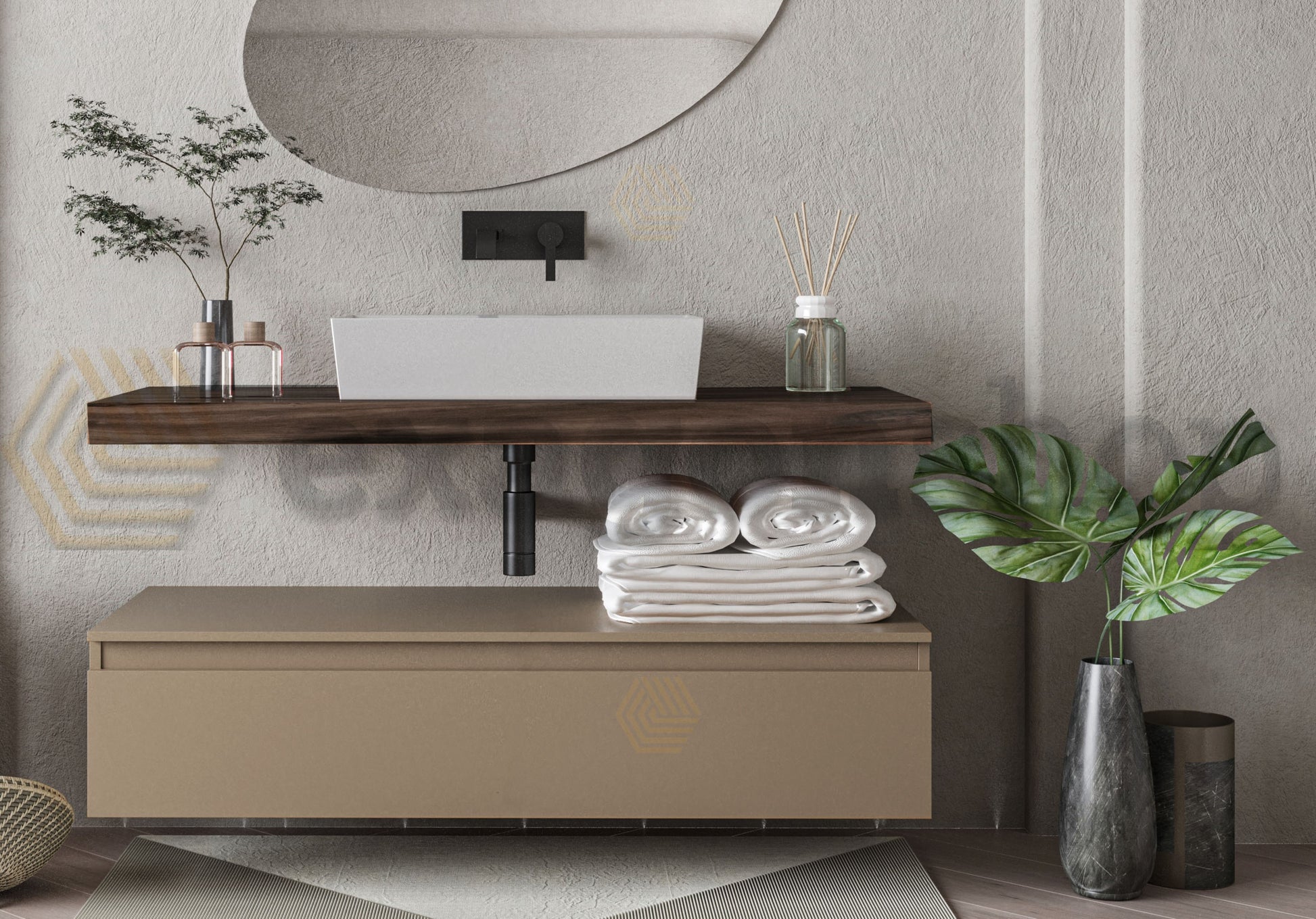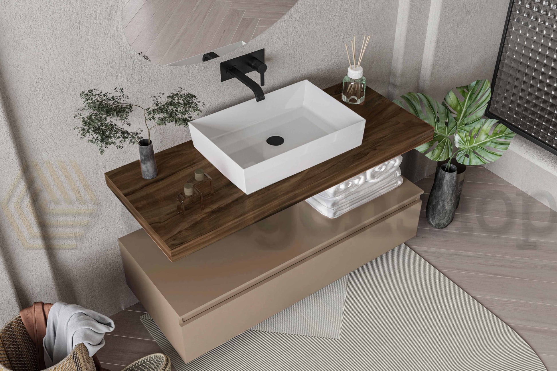 Mobile bagno tabacco tortora opaco 120x50 Oasy un cassetto con top e lavabo rettangolare da appoggio