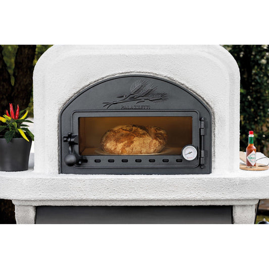 Palazzetti Capri 3 barbecue a legna con forno esterno in acciaio con piano in Marmotech effettto granito grigio