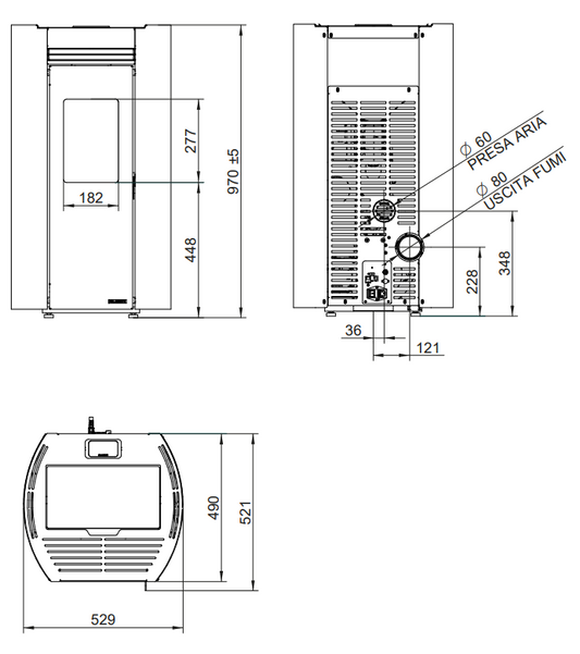 Flo 6 Palazzetti Stufa a pellet ad aria in acciaio verniciato nero Ecofire 805809800