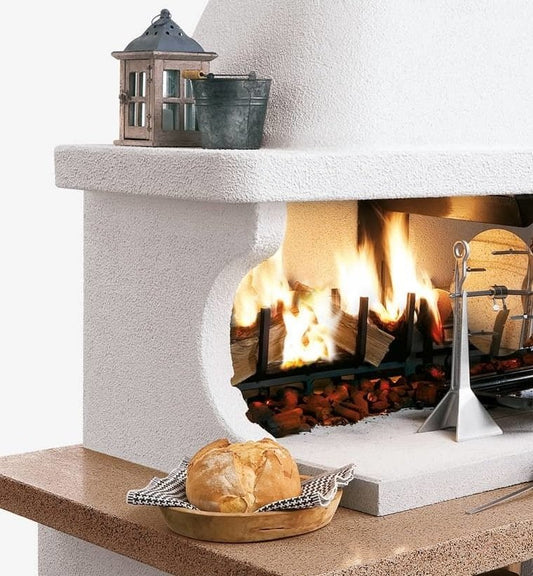 Palazzetti Tropea 4 barbecue a legna con braciere laterale con piano in Marmotech effetto granito grigio