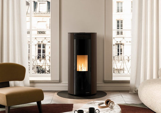 Clelia 13 Palazzetti Stufa a pellet ermetica in acciaio verniciato moka con fianchi arrotondati Ecofire 805806991