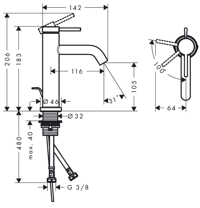 Composto da: miscelatore monocomando lavabo e set di scarico