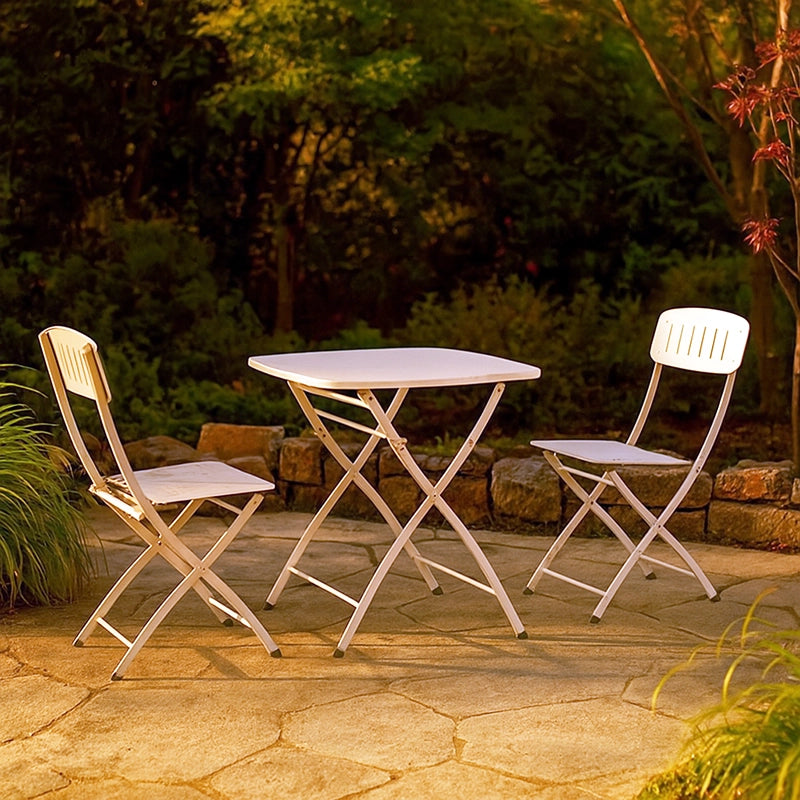 La praticità del design pieghevole consente di riporre facilmente il set quando non in uso, rendendolo un'opzione versatile per ogni tipo di spazio esterno. La tonalità bianco opaco, abbinata alla finitura resistente, dona al set un'estetica distintiva e lo rende un elemento d'arredo duraturo ed elegante, perfetto per chi cerca una combinazione di stile e funzionalità.