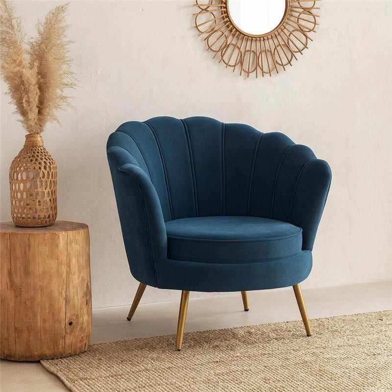 Tessuto Effetto Velluto Blu Pavone: Il rivestimento in tessuto effetto velluto blu pavone conferisce alla poltrona un aspetto lussuoso e accattivante.