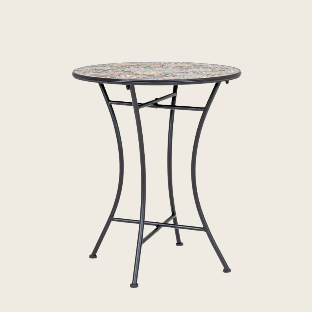 Dimensioni compatte: Con un diametro di 60 cm, questo tavolo è ideale per spazi esterni più piccoli, come balconi, terrazze o giardini.