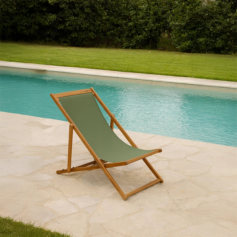 Noemi Relax: Sedia sdraio pieghevole da esterno in legno di acacia poliestere verde muschio Andrea Bizzotto