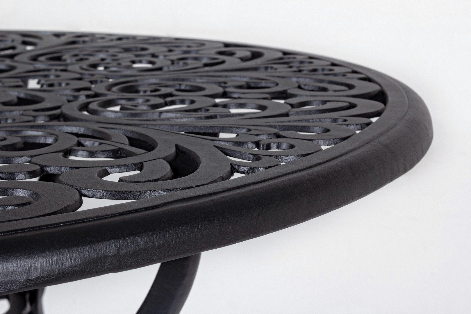 Realizzato interamente in lega di alluminio con finitura antracite opaco, il tavolo offre un’eccellente combinazione di leggerezza, robustezza e resistenza agli agenti atmosferici. La finitura opaca esalta le linee e i dettagli decorativi, garantendo un aspetto elegante e sofisticato che non passa inosservato.