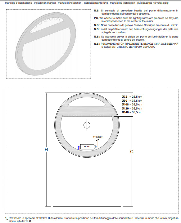 Con un diametro di 90 cm, il Circus90W è perfetto per essere installato sopra lavabi o mobili da bagno, fornendo una superficie ampia e luminosa. La sua forma arrotondata e il design minimalista lo rendono un elemento decorativo versatile, capace di ampliare visivamente lo spazio.