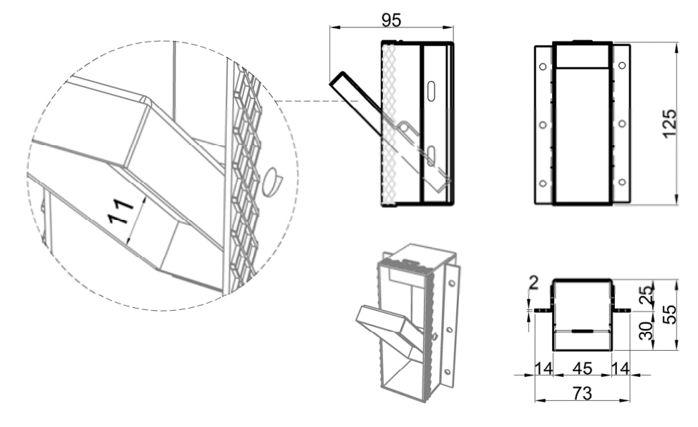 La struttura è in acciaio inox AISI 304 con finitura alluminio, materiale che garantisce robustezza, resistenza alla corrosione e durabilità nel tempo. La dimensione del prodotto è 7,3 x 5,5 x 12,5 cm, molto compatto e poco ingombrante, perfetto per ambienti di piccole dimensioni dove si vuole avere a disposizione un appoggio per gli abiti.