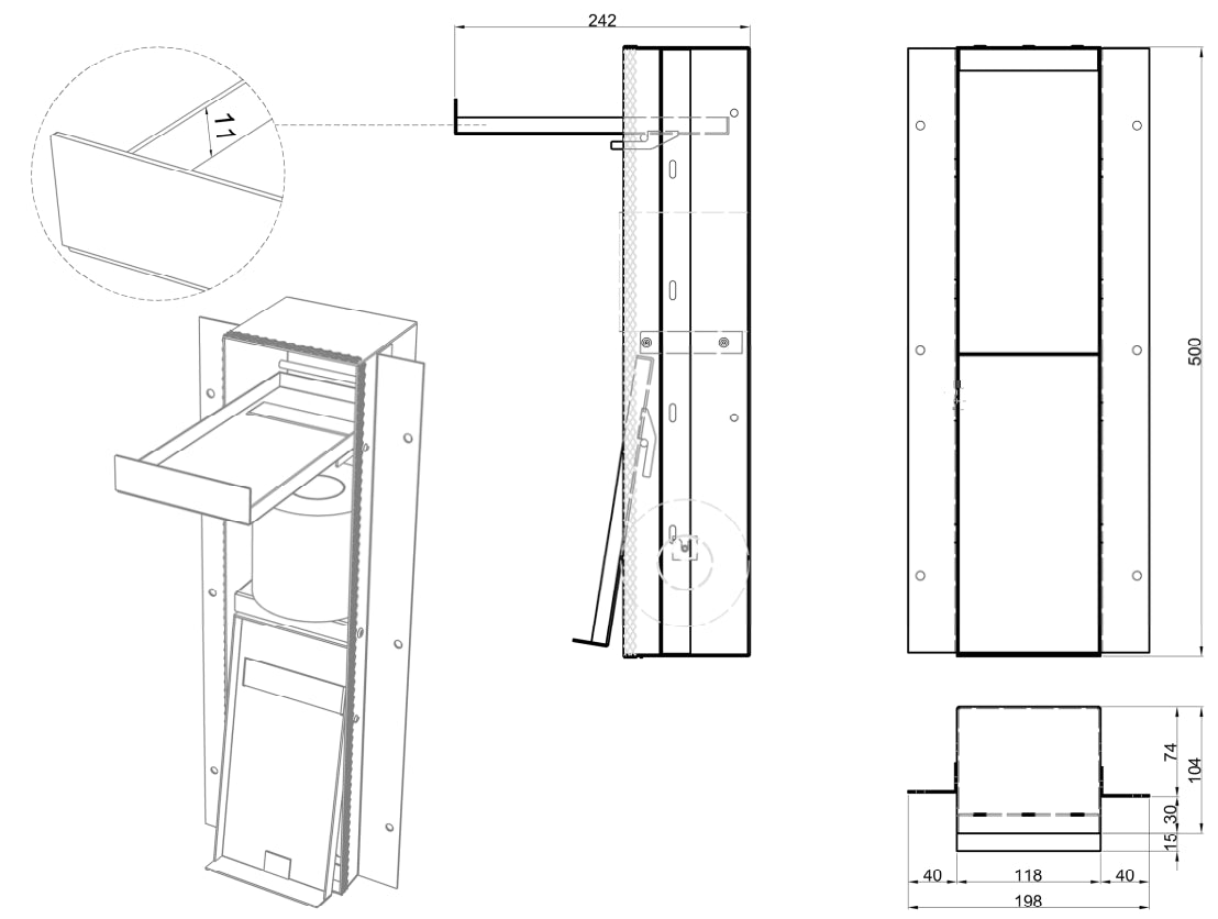 Ha la particolarità di avere uno scomparto supplementare, per contenere una scorta di carta igienica, in modo da avere sempre a disposizione una scorta di riserva in caso di necessità.