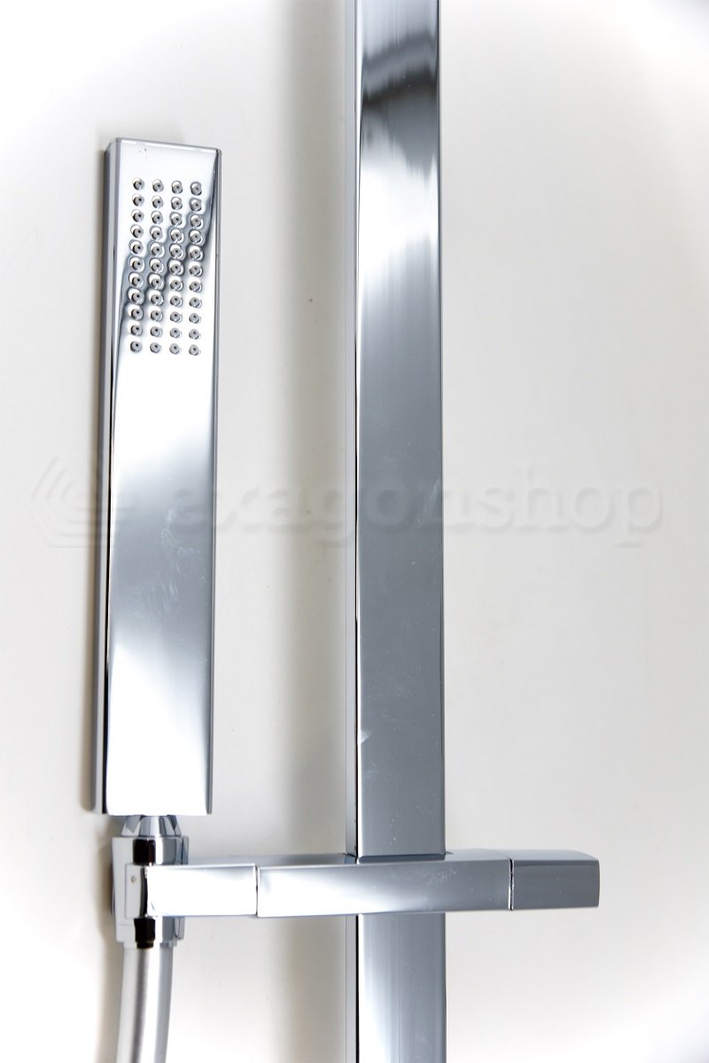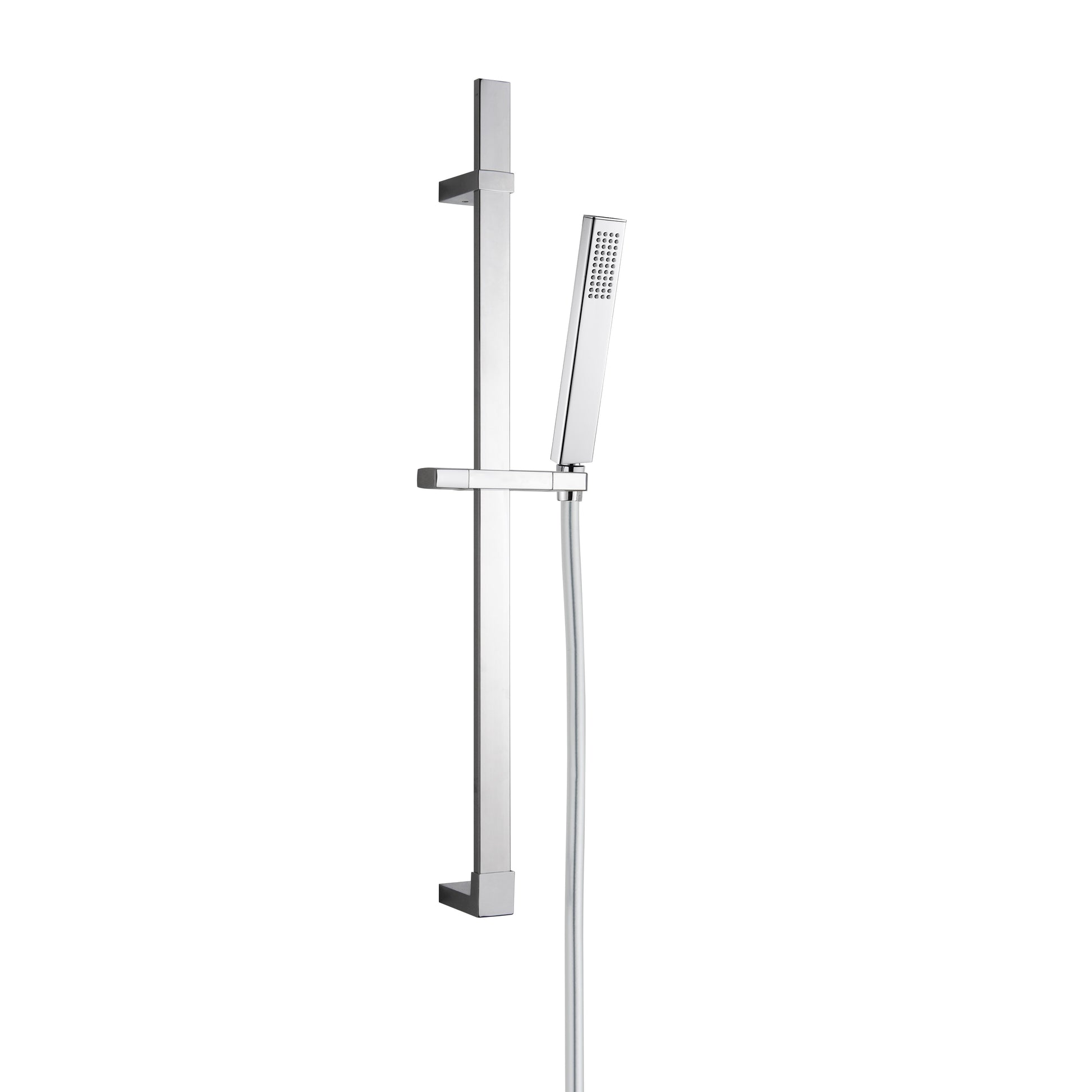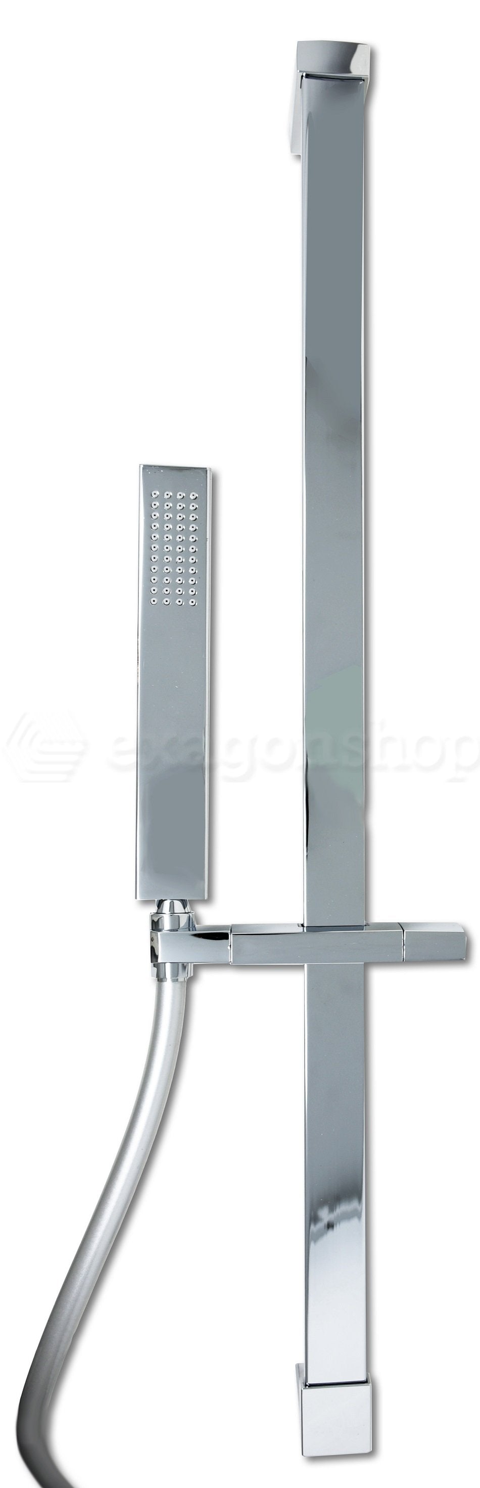 Asta doccia con saliscendi doccetta quadra in ottone e flessibile in pvc cromo
