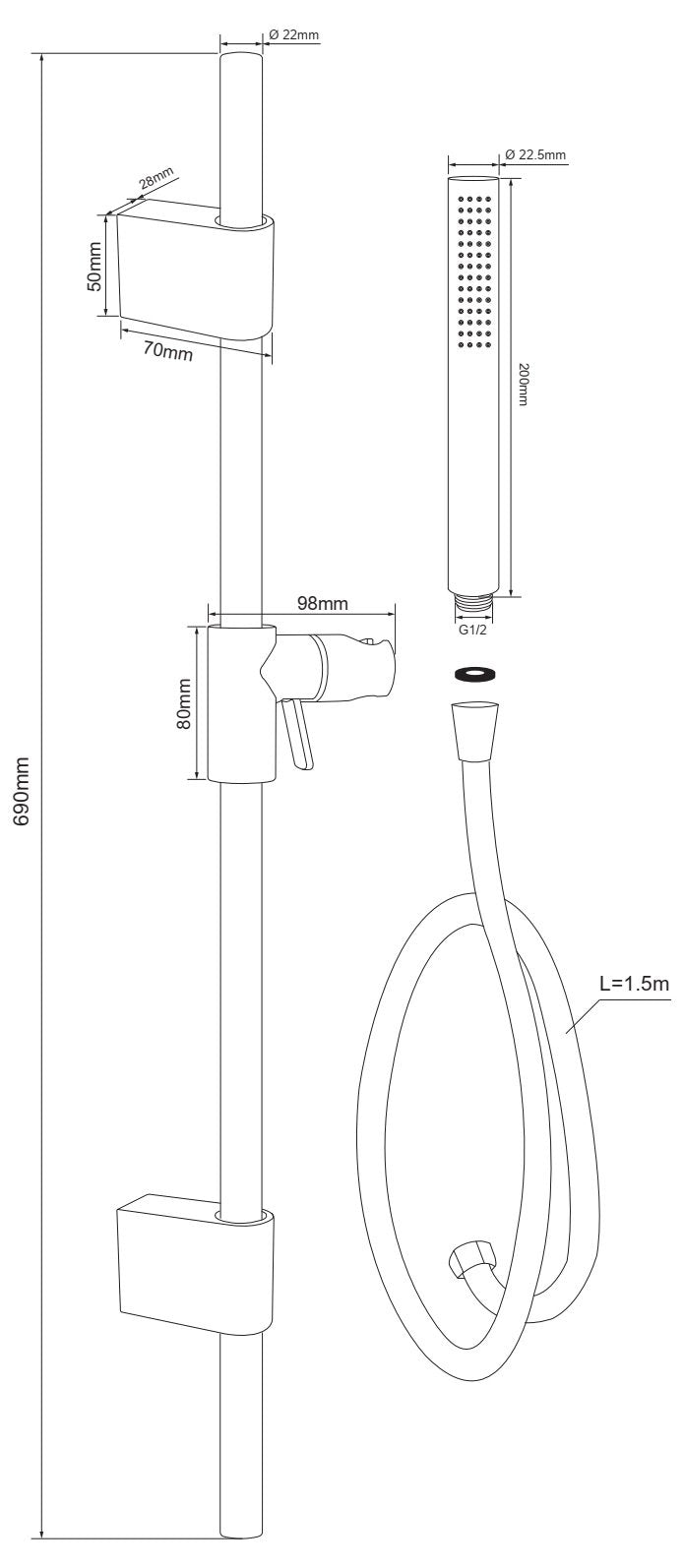 - Facilità di Installazione: L'asta doccia con saliscendi è progettata per essere facilmente installabile. Viene fornita con tutti gli accessori necessari per il montaggio, rendendo l'installazione un processo rapido e senza problemi.