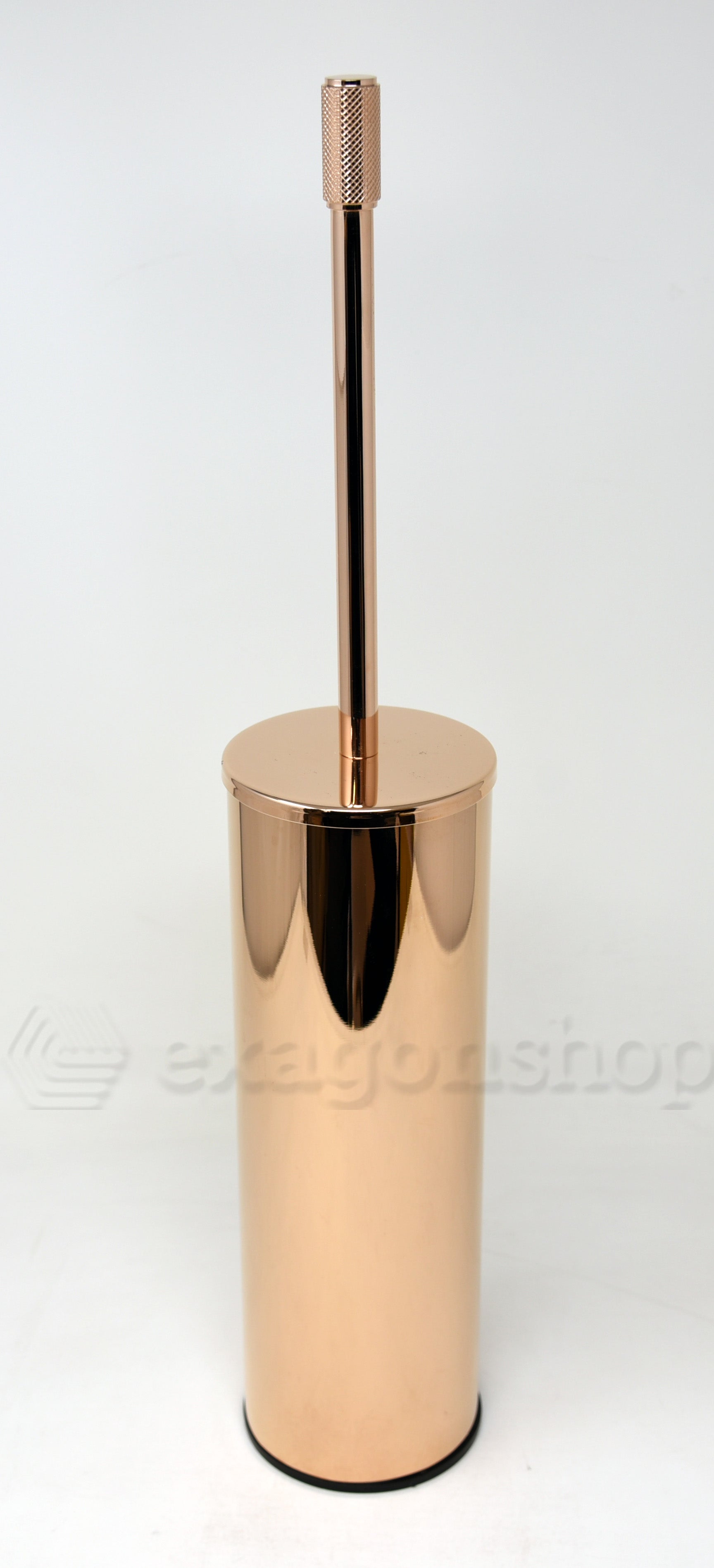 Il prodotto è realizzato con materiali di alta qualità, che lo rendono resistente e durevole nel tempo. Il design del porta scopino è pulito e minimalista, con una forma slanciata e affusolata che dona eleganza all'ambiente. La superficie è liscia e lucida, e la finitura oro rosa conferisce un tocco di raffinatezza e stile.