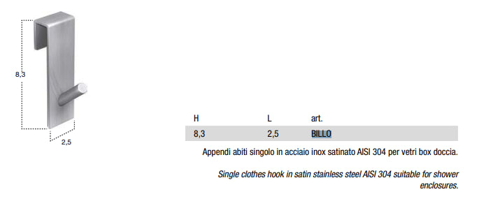 Antonio Lupi Billo Appendiabiti Per Vetro Box Doccia Finitura Acciaio inox