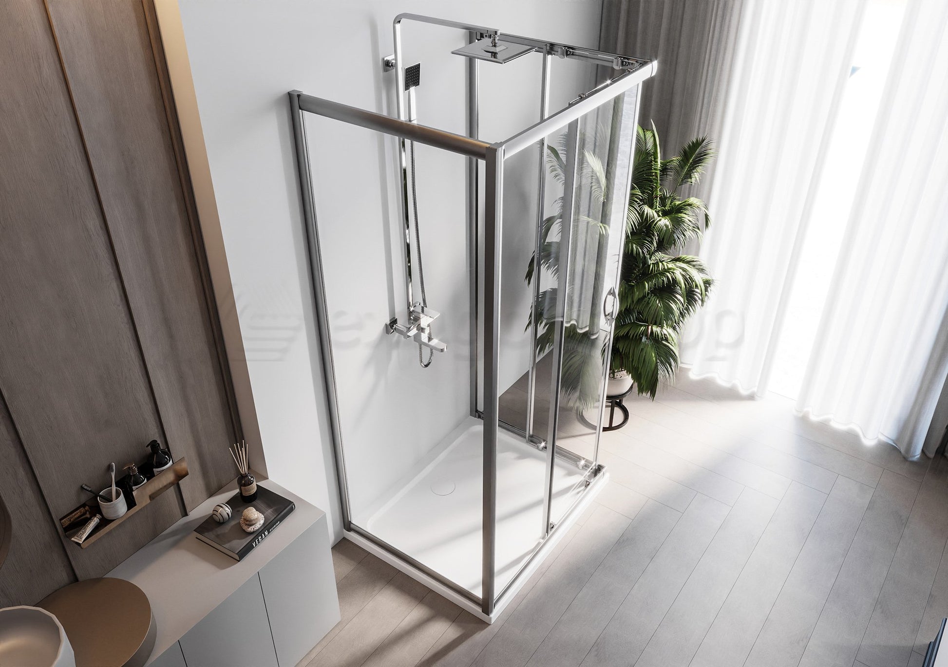 Box doccia 3 lati 70x100x70 due ante scorrevoli magnetiche vetro trasparente 6mm 195h profili cromo Genio