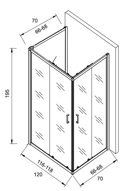 Dimensioni: Il box doccia ha una base di 70x120x70 centimetri e tre lati, creando una zona doccia spaziosa e comoda.
