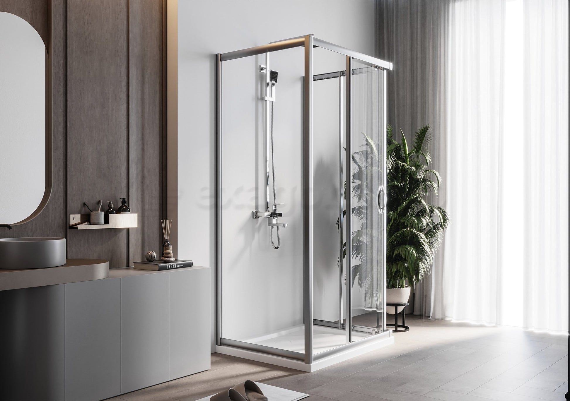 Ante Scorrevoli Magnetiche: Le due ante scorrevoli sono dotate di un meccanismo magnetico che le mantiene chiuse in modo sicuro durante la doccia. Questo evita fuoriuscite d'acqua e mantiene il bagno asciutto.