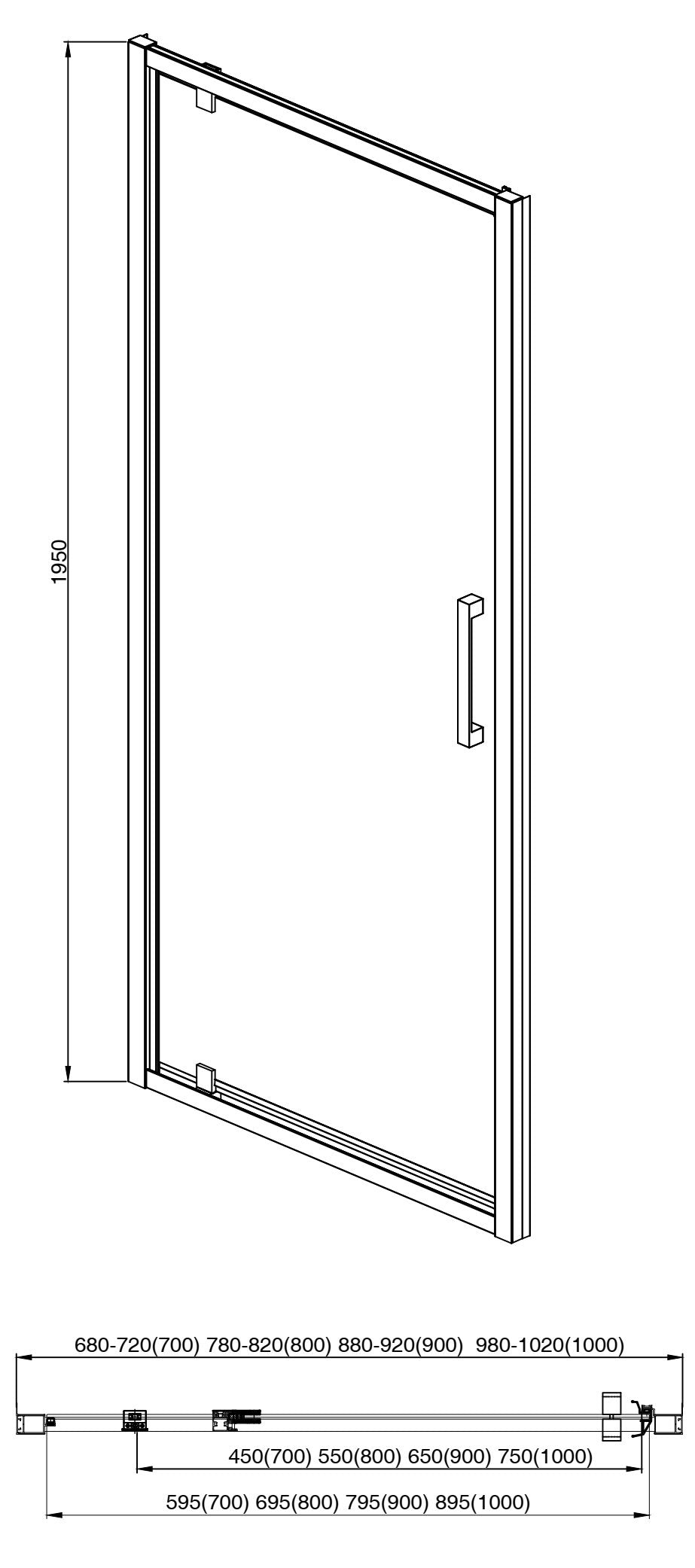 Box doccia 70 cm nicchia Marsiglia un battente reversibile H 195 cromo